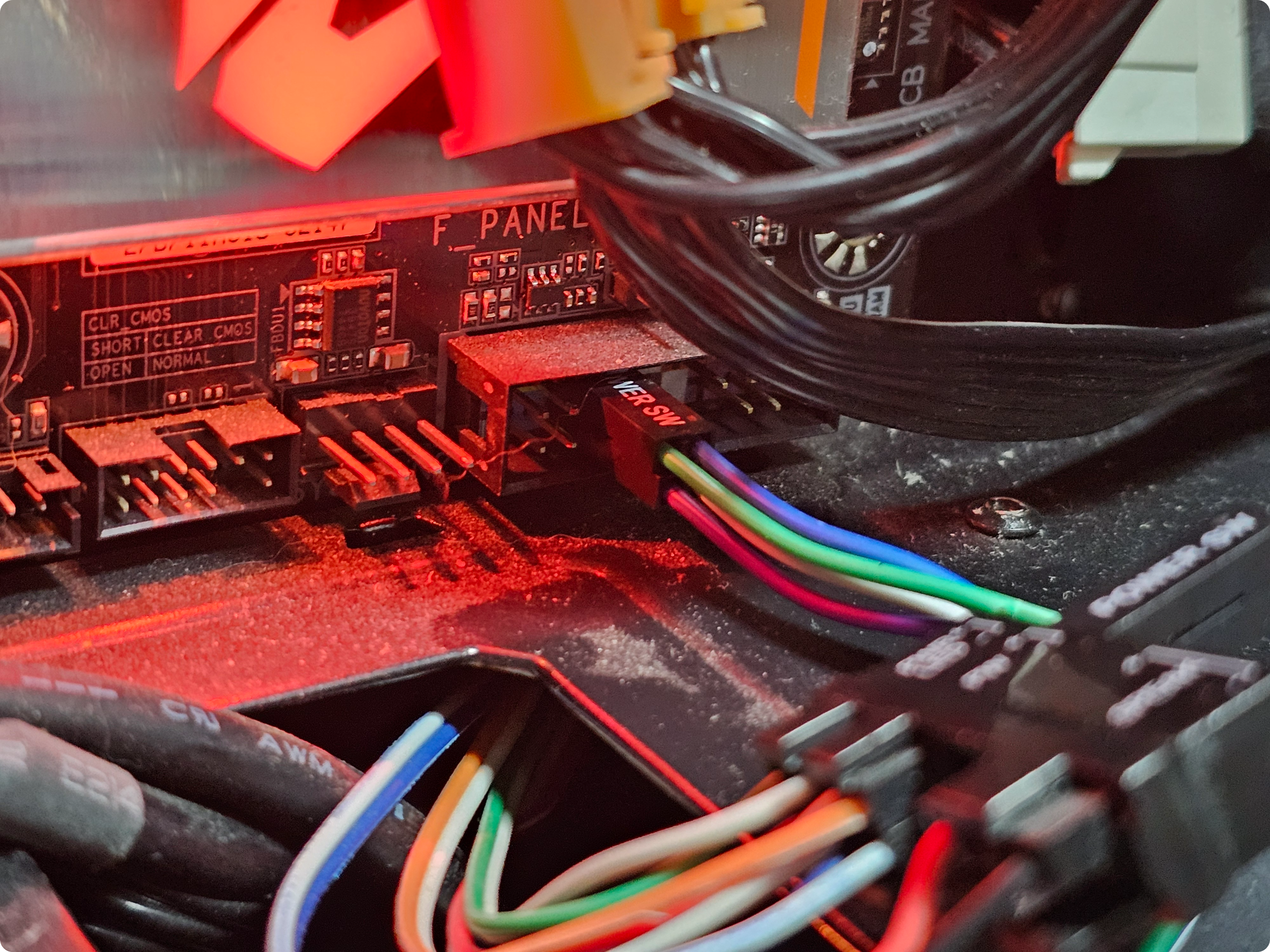 메인보드에 연결하는 전원라인 + 리셋 라인